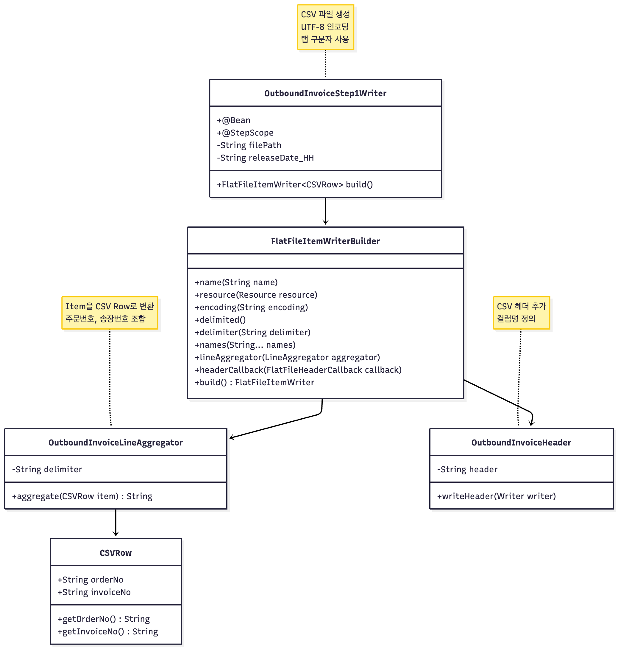public FlatFileItemWriter<CSVRow> OutboundInvoiceStep1Writer() {