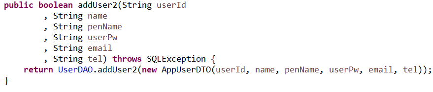 public boolean addUser2(AppUserDTO appUser) throws SQLException;